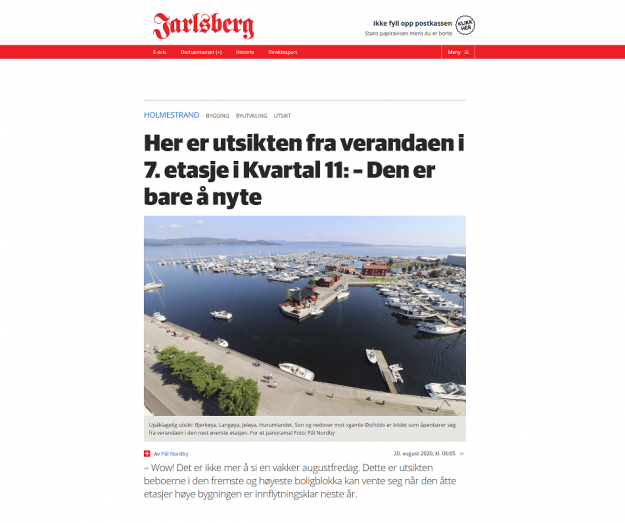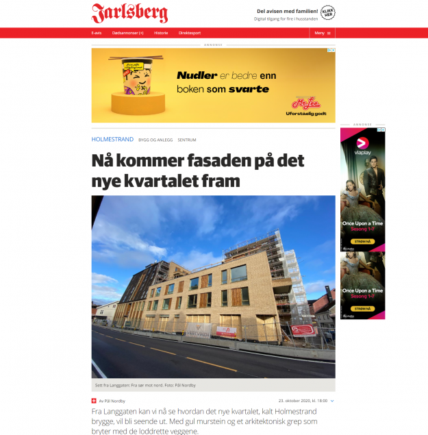 Fra Langgaten kan vi nå se hvordan det nye kvartalet, kalt Holmestrand brygge, vil bli seende ut.