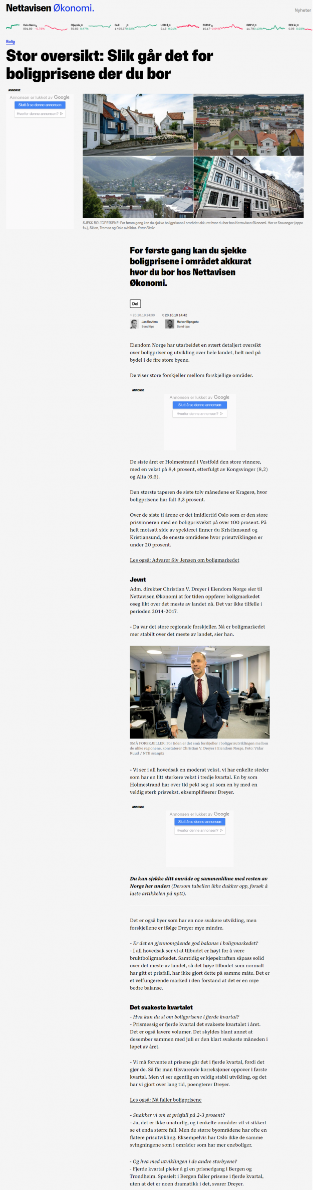 Holmestrand var kommunen med høyest boligprisvekst i Norge i 2018.