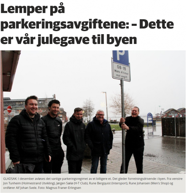 Det blir gratis parkering i Holmestrand sentrum i desember