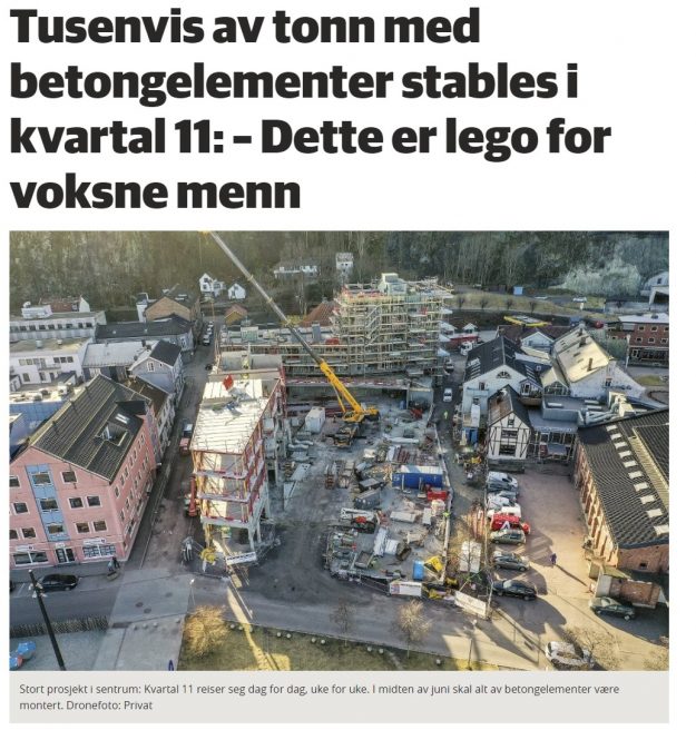 Holmestrand Brygge reiser seg. Fremdriften på byggeplassen er god.